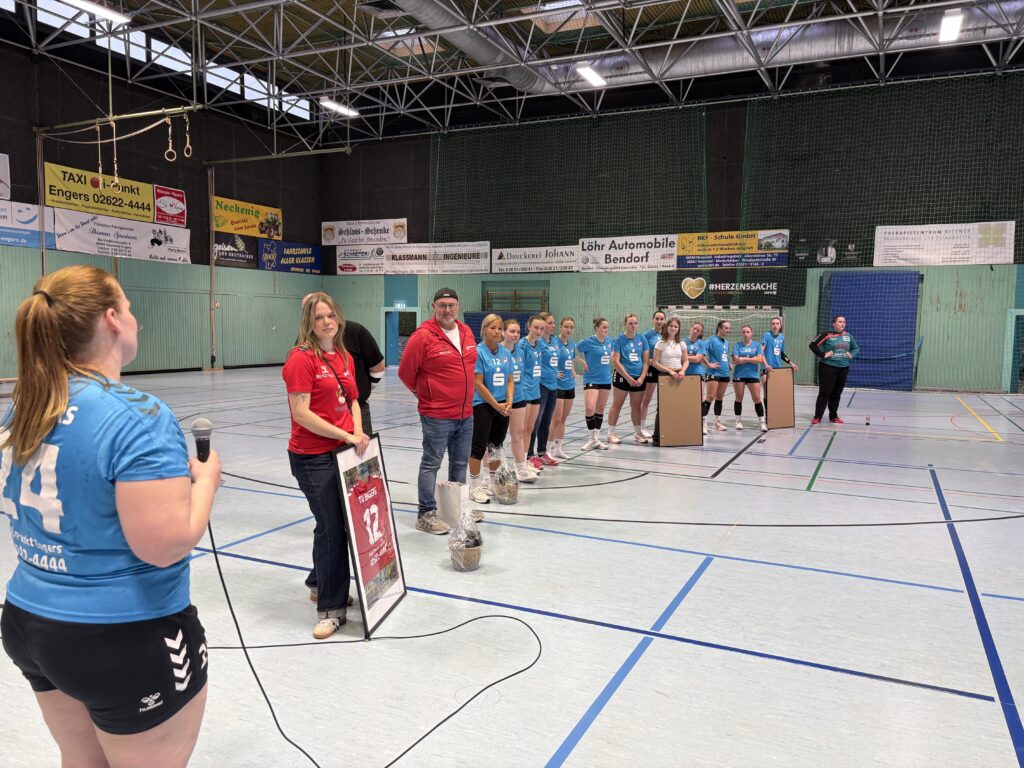 Nach dem Schlusspfiff wurde es noch einmal emotional. Vor den versammelten Fans verabschiedete der TV Engers die Spielerinnen Lena Frische, Emilia Kublik und Lisa Schmidt, die vorerst eine Pause vom Handball einlegen werden. Unter großem Applaus bedankte sich der Verein für ihren Einsatz und ihr Engagement.